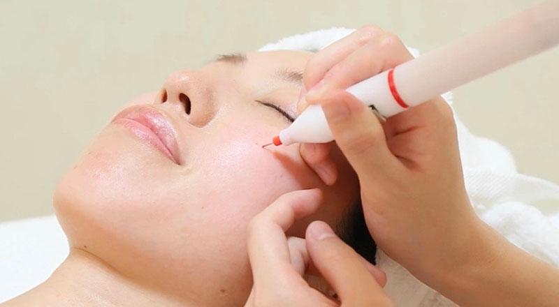 酸性の美容液をお肌に含ませ、美容成分を補給しながら角質や角栓を削り取り、毛穴の洗浄・ひきしめ、シワ・くすみを改善する最新ピーリング技術です。鎮静、殺菌の作用で、ニキビの改善には特に効果テキメンです。驚きのつるつるたまご肌をぜひお楽しみください。
